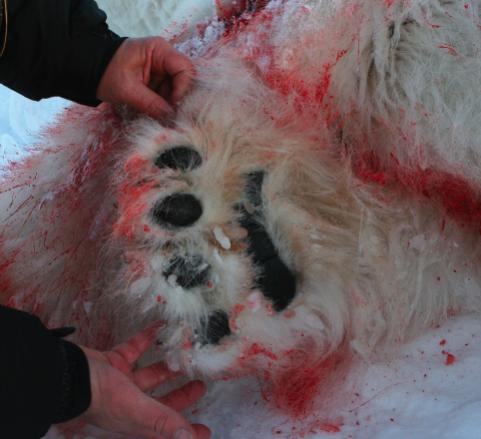 Actual photo of polar bear damage on a human foot. Huarache sandals won’t help.