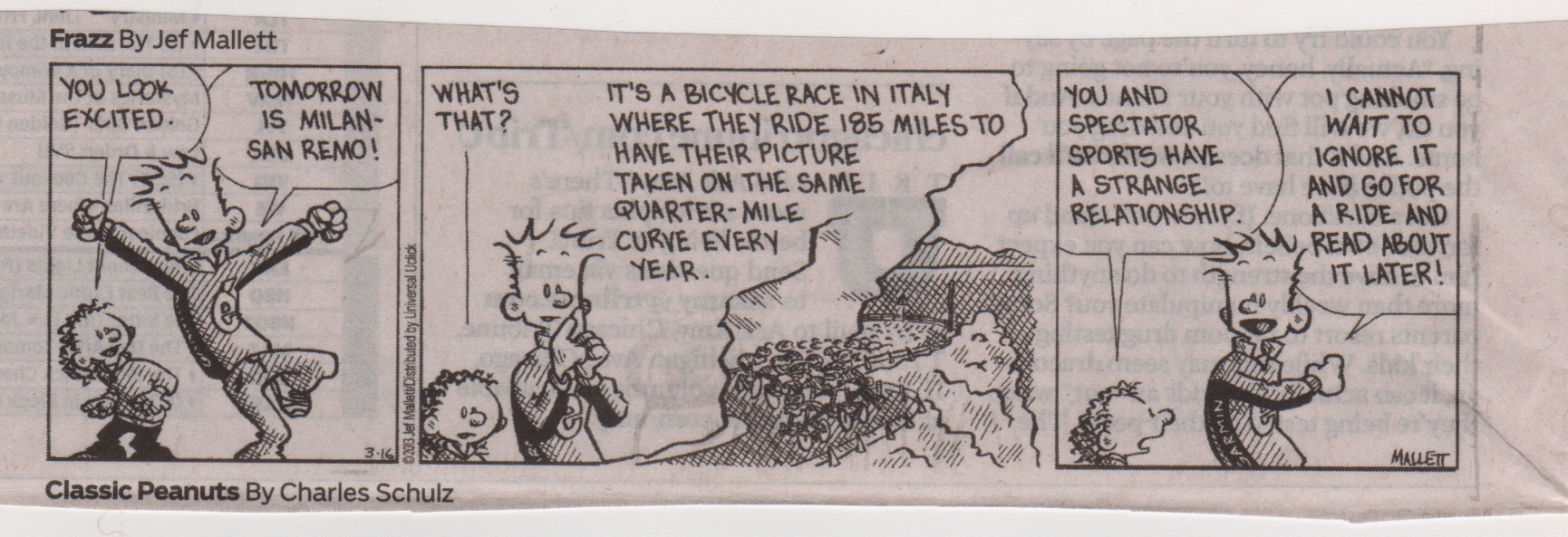 This entry was posted in We Run and Ride Every Day and tagged Frazz Cartoon, Saturday artwork. Bookmark the permalink.