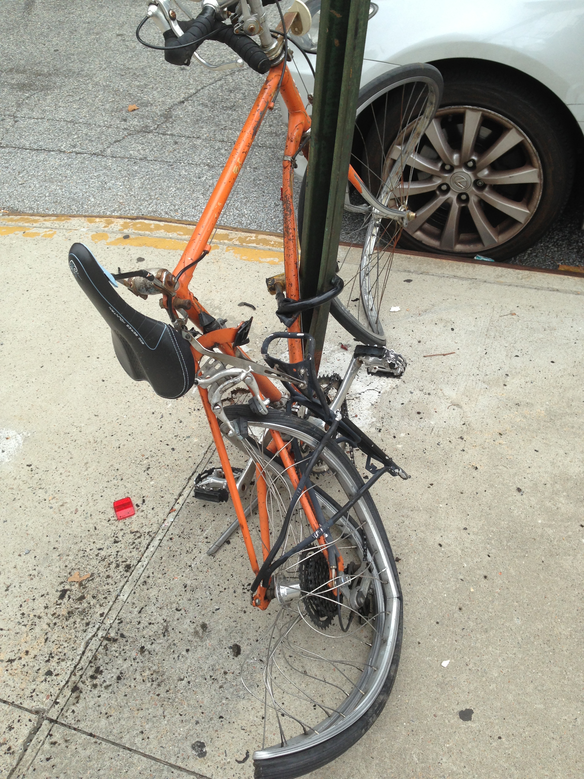 There is bike diversity, you see. You have people riding every conceivable type of bike. There are plenty of classy old Schwinns tooling around, of course. They are steel, sturdy and not as theft-worthy. Old bikes are a fine art form, although some seemed to have evolved into abstractions, and left to the elements and activities of New York, they become unridable, unwanted and cast off. Just like some of the people of New York. It’s a common phenomenon. The power of evolution, actually.