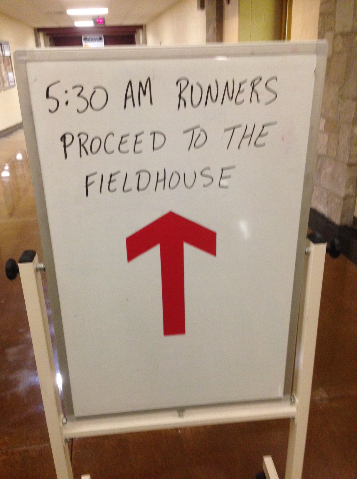 So you can imagine the pleasure it brought to rise at 5:15 this very morning and head over to that field house for the chance to use the indoor track. The behind-the-scenes work of chatting with my friend and head football and track coach Dennis Piron (his football team won the 2013 Illinois state championship) was done. So were the phone conversations and emails with Tom Spadafora, President of the Fox River Trail Runners, a highly successful running club that now directs major races in the area such as the Fox Valley Marathon and Half Marathon.