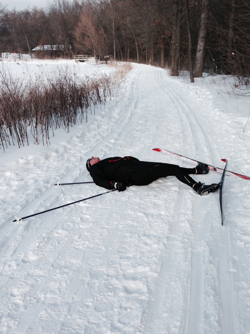 The rest of them skied past without looking. They did not want bad snow karma to wash off on them. They were probably skiing for the next four hours. That’s what skate skiers do. They ski until they literally disappear into the winter mist like a ghost. Then they are reincarnated the next day in time for work.