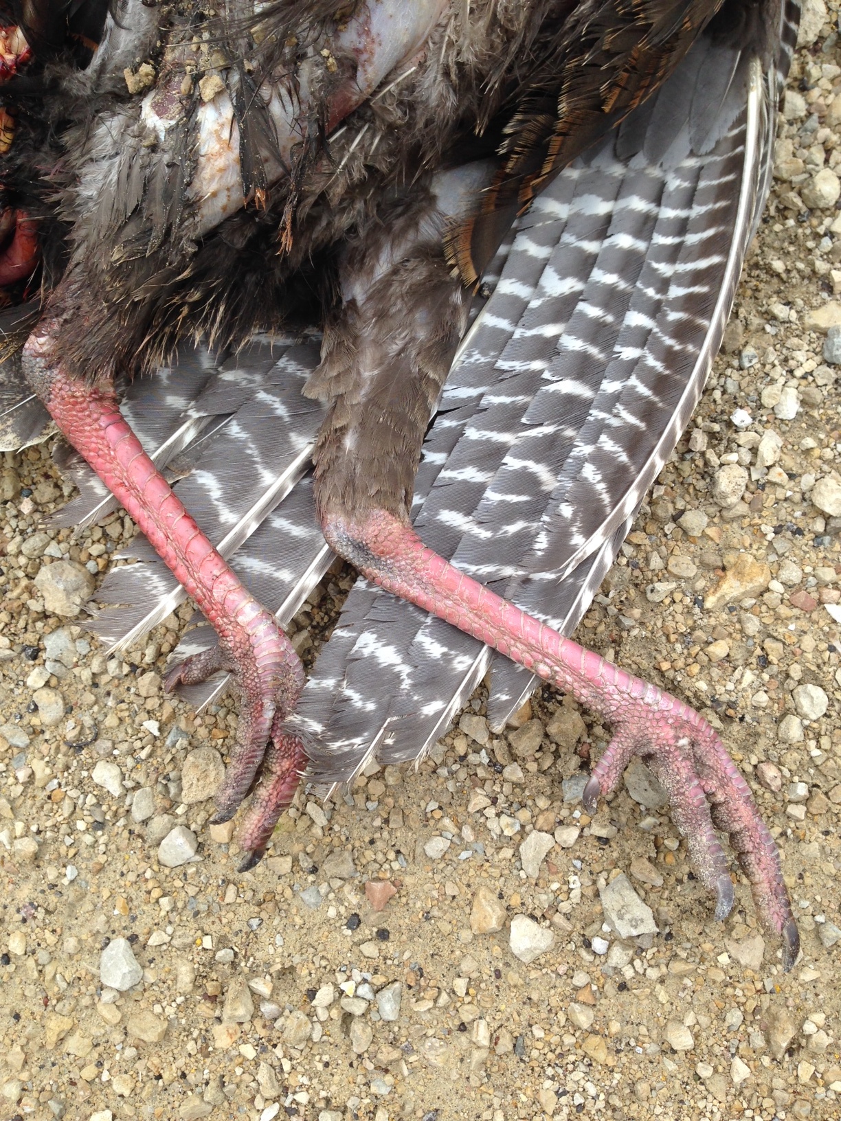 But to my horror, I found her collapsde in a heap of rumpled feathers and guts around the next curve.
