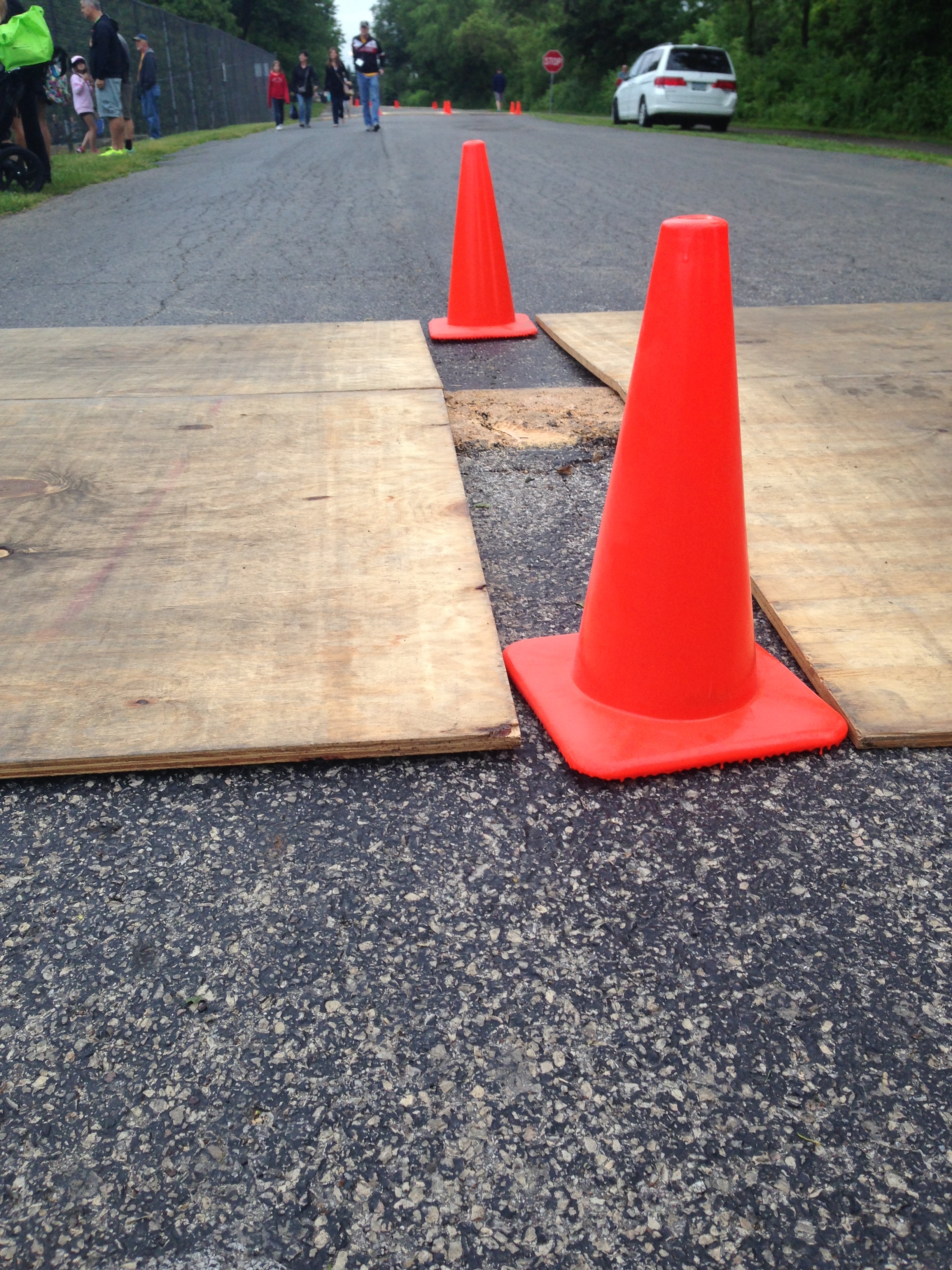 It is rather funny that an event still comes down to putting boards over speed bumps and plopping orange cones where you need them. You are a fortunate race organizer indeed if nothing happens to any of the competitors. No crashes or wipeouts on the run. The rain predicted the night before turned into spits and not downpours, and the maple leaf helicopters that can turn streets into dangerous slicks did their duty of falling two weeks before the event. So conditions were relatively safe and manageable.