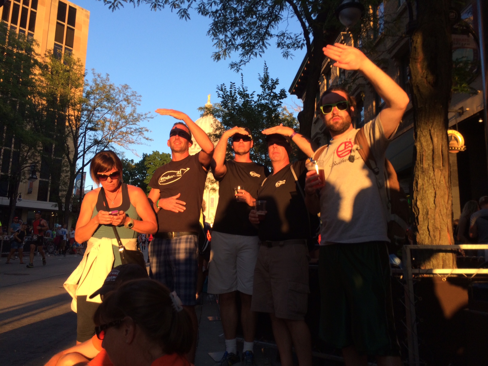 Okay, I might have been imagining that thanks in part to the three beers I’d just ingested at Capital Brewery restaurant in downtown Madison. The entire town is one big party for Ironman weekend. That’s Madison…