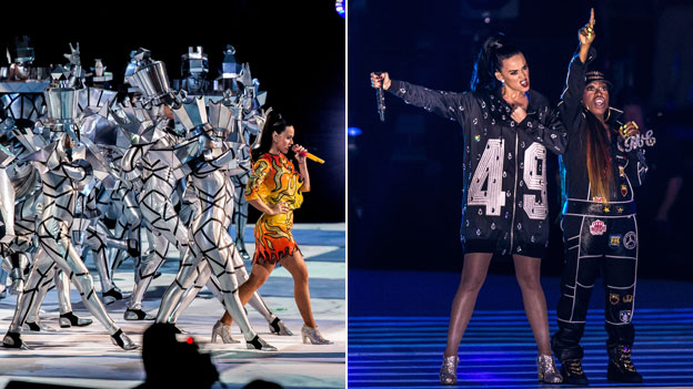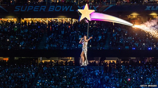 So we all knew that we’d be getting a rigid looking Katy Perry (she can’t really dance) riding out to midfield on a giant faux-golden pussy cat. What else could it have been? Then Lenny Kravitz played guitar (we think…) like a saint sent from Beezelbub. Finally, Missy Elliott turned the event into a hard-rapping dance orgy. It really all fit nicely with the theme of the day. “Oh that’s Super! Just Super!”