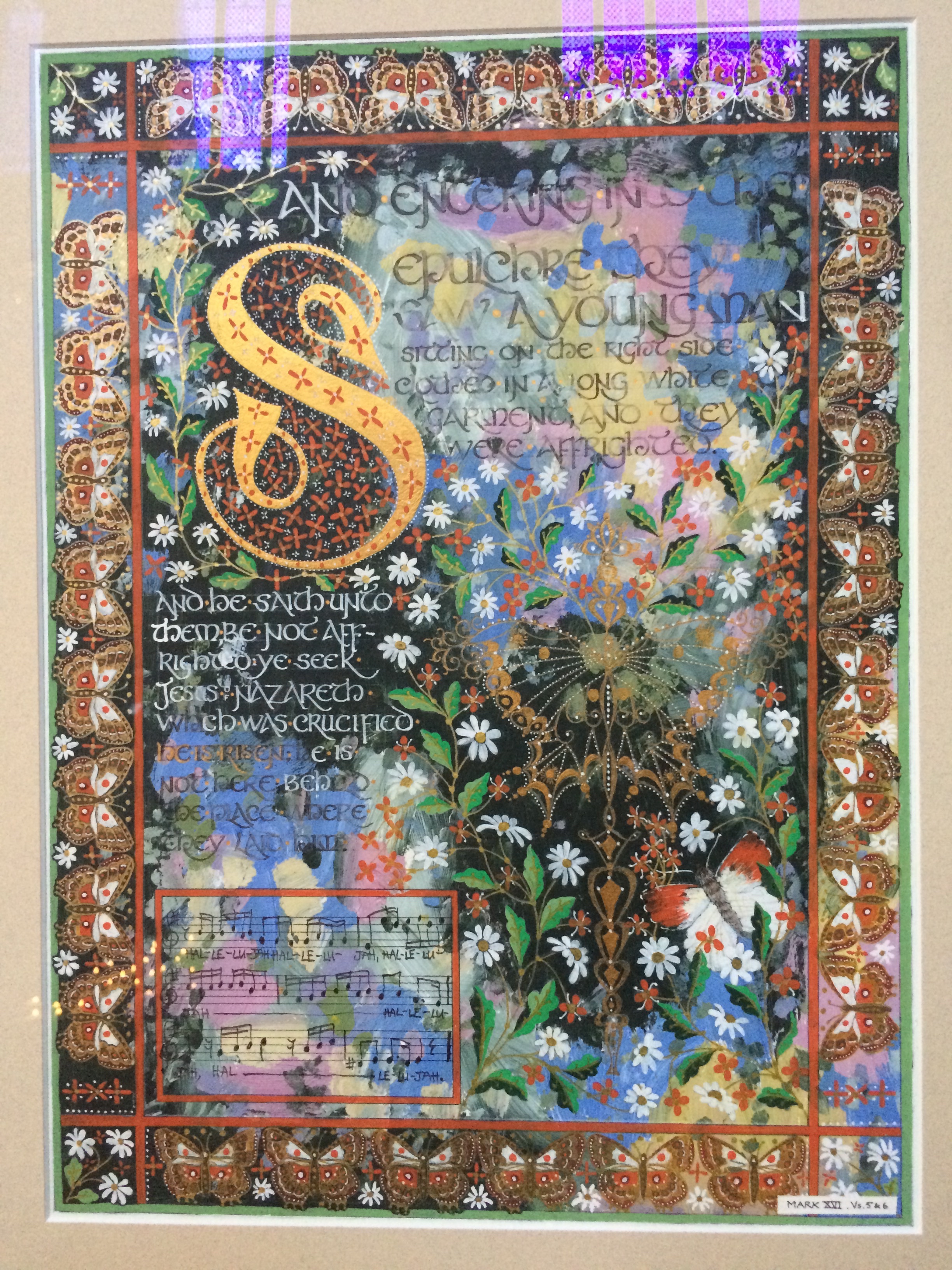 There were spiritual consideration as well. These met with a perfect expression at Bath Abbey, a towering chapel rebuilt many times over the last 1000 years. Alongside the main chapel there was a series of diptych paintings and weavings by Sue Symons. These were so wonderfully conceived and executed, and followed the entire life of Christ from start to finish. The creative, emotive work in each square inch of these portrayals was a miracle unto itself. By the time we reached the final pair my eyes were filled with tears.