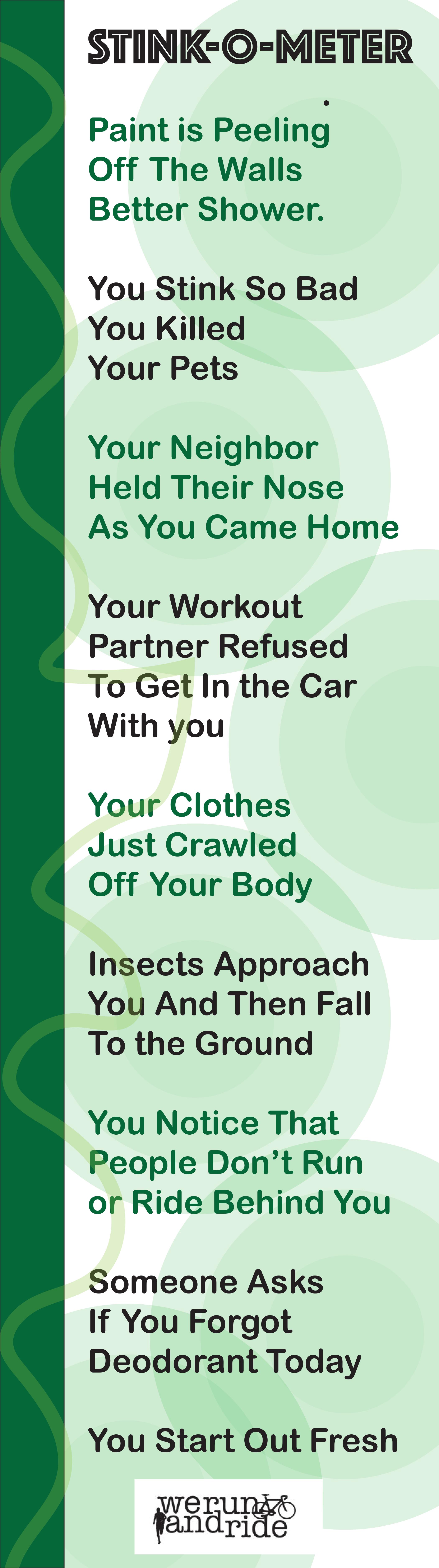 As a public service to you and the rest of the world, We Run and Ride is here to inform you that you stink. Well, once in a while anyway. You stink.