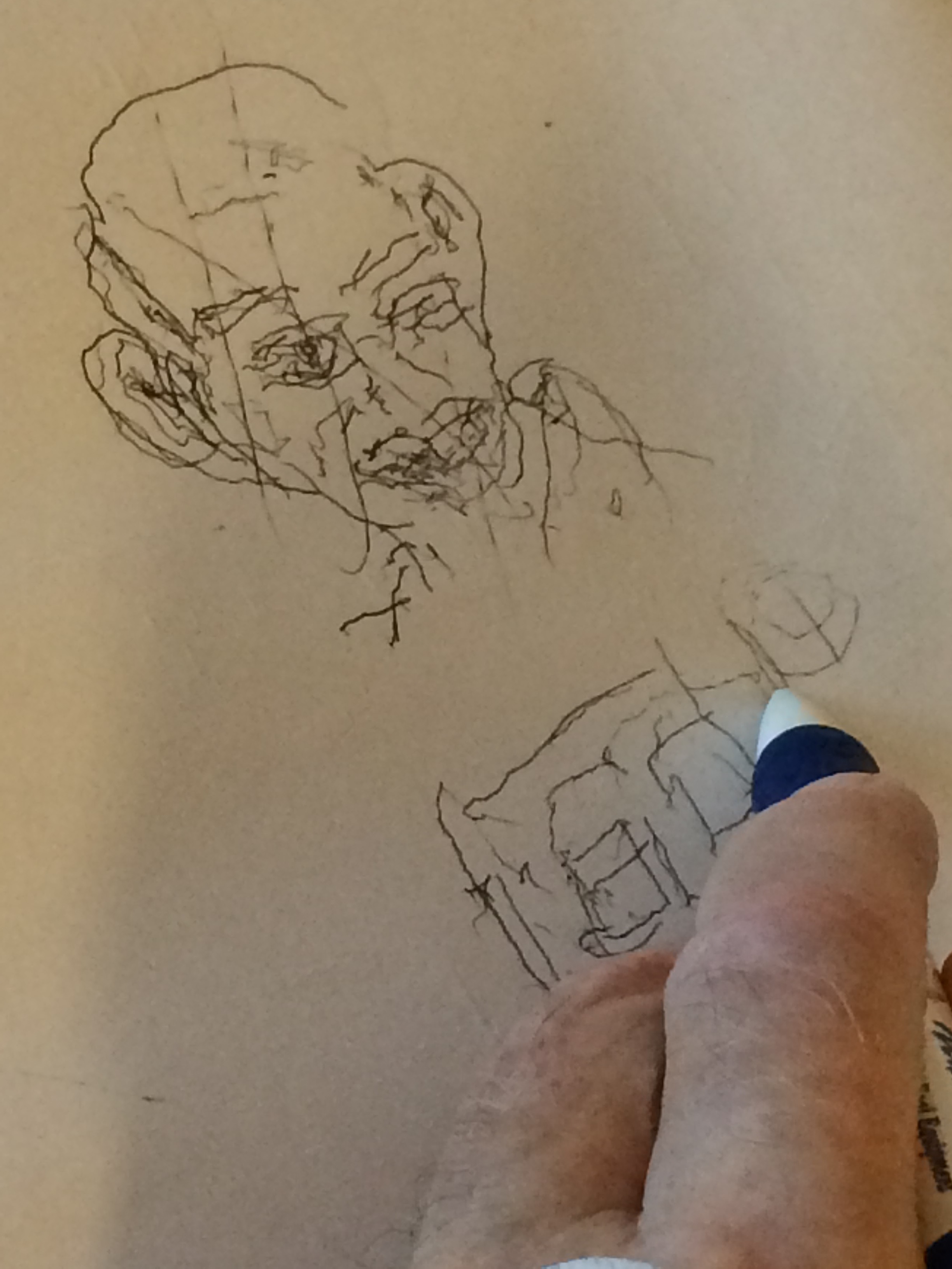 He’s been bombing around visiting garage sales and buying all sorts of weird crap ever since. There are ten full sets of golf clubs in his garage. He still uses his one good hand to repair and restore clubs. He can also draw quite well using his left hand. That has been useful in his communication because he lost the ability to speak after his stroke. For thirteen years my father has not been able to say much more than the word “Poo,” if he doesn’t like something, and “Yeah…” if he does.