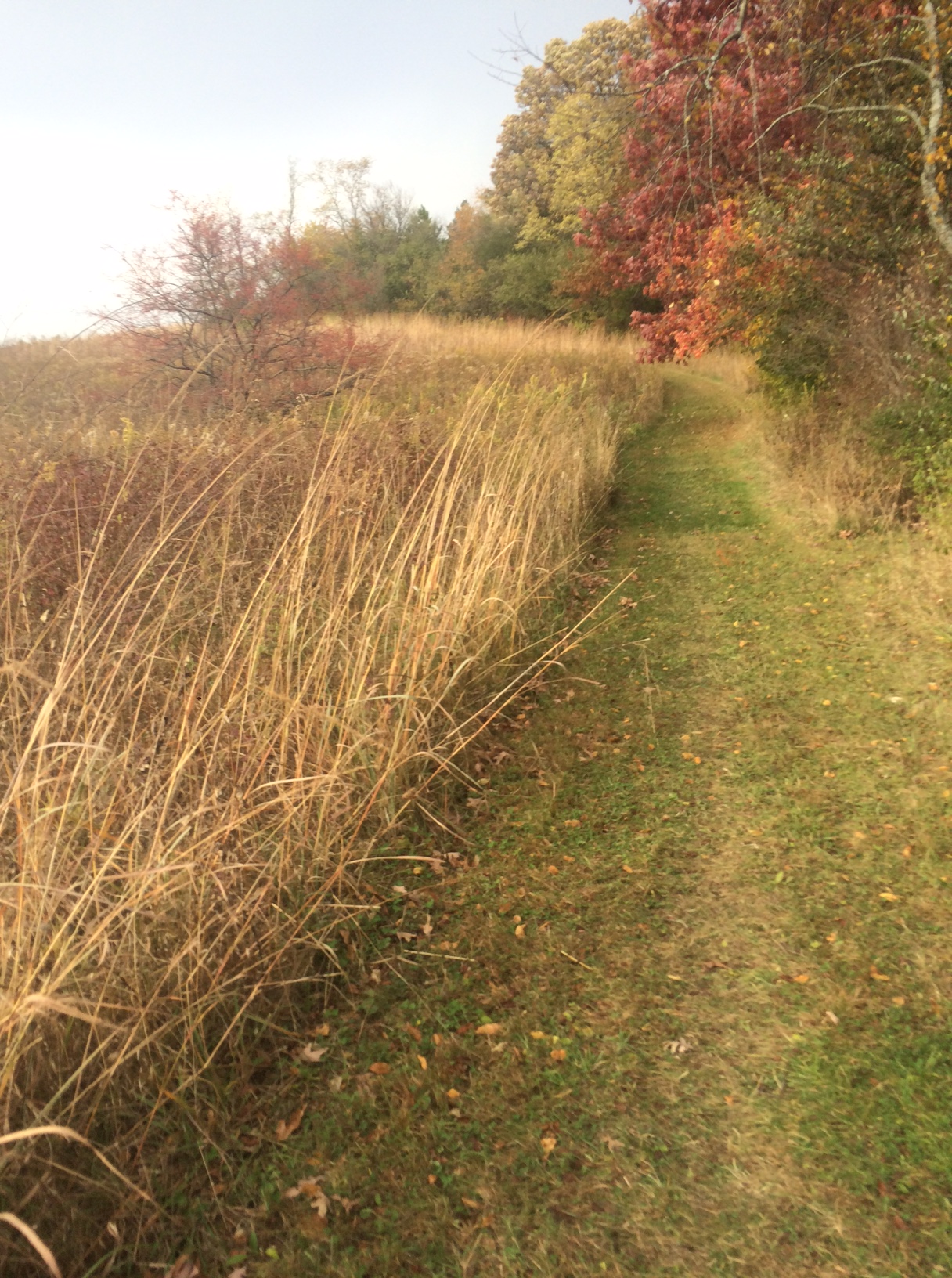 Yesterday I ran in Leroy Oakes Forest Preserve, a large park on the west side of St. Charles, Illinois where I went to high school. The preserve is a mix of grassy hills, mature oak woodlands and former farm and residential property now converted into open space for recreation and nature study. It is also the site of the area’s main high school cross country course for several high schools.