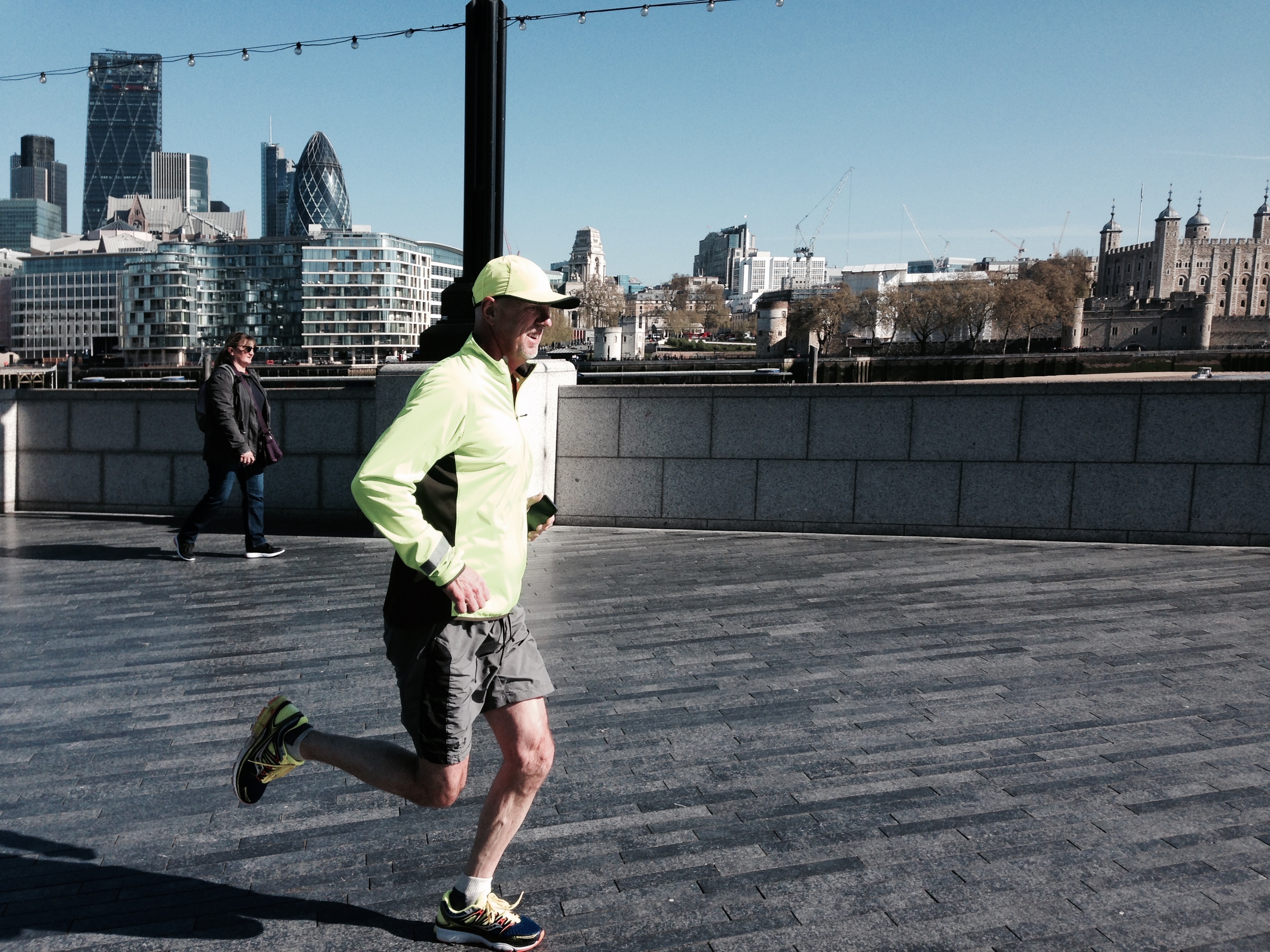 This taught me my top end. I also threw in 6:00-pace 400 meter interval sessions (typically 6-8 intervals) to teach my legs a quicker tempo. This also has the effect of lengthening critical leg muscles in the calves and somewhat ironically loosens my Achilles tendon.