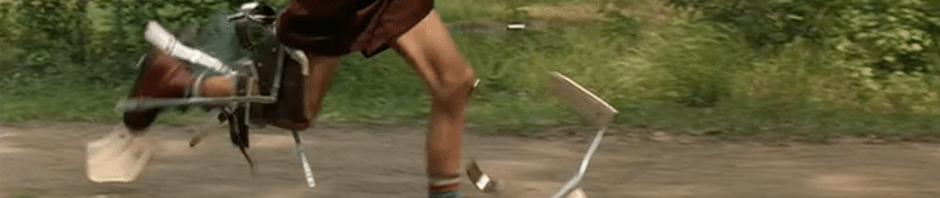 He uses his running at first to get where he wants to go. But first, he must escape the rocks and anger of his bully tormentors. They threaten and strike him with stones, then chase him down the country lane on their bikes. But Forrest, having earned his strength through toil in the braces, leaves them all behind.
