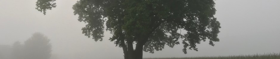 Then along comes a foggy morning when the world is shrouded and feels closed in. Encompassed in that shrunken world, we suddenly feel tiny particles of moisture landing on our skin. Our footsteps speak to us from the bottom of our feet. Our eyes grow dark and focused on the road ahead.