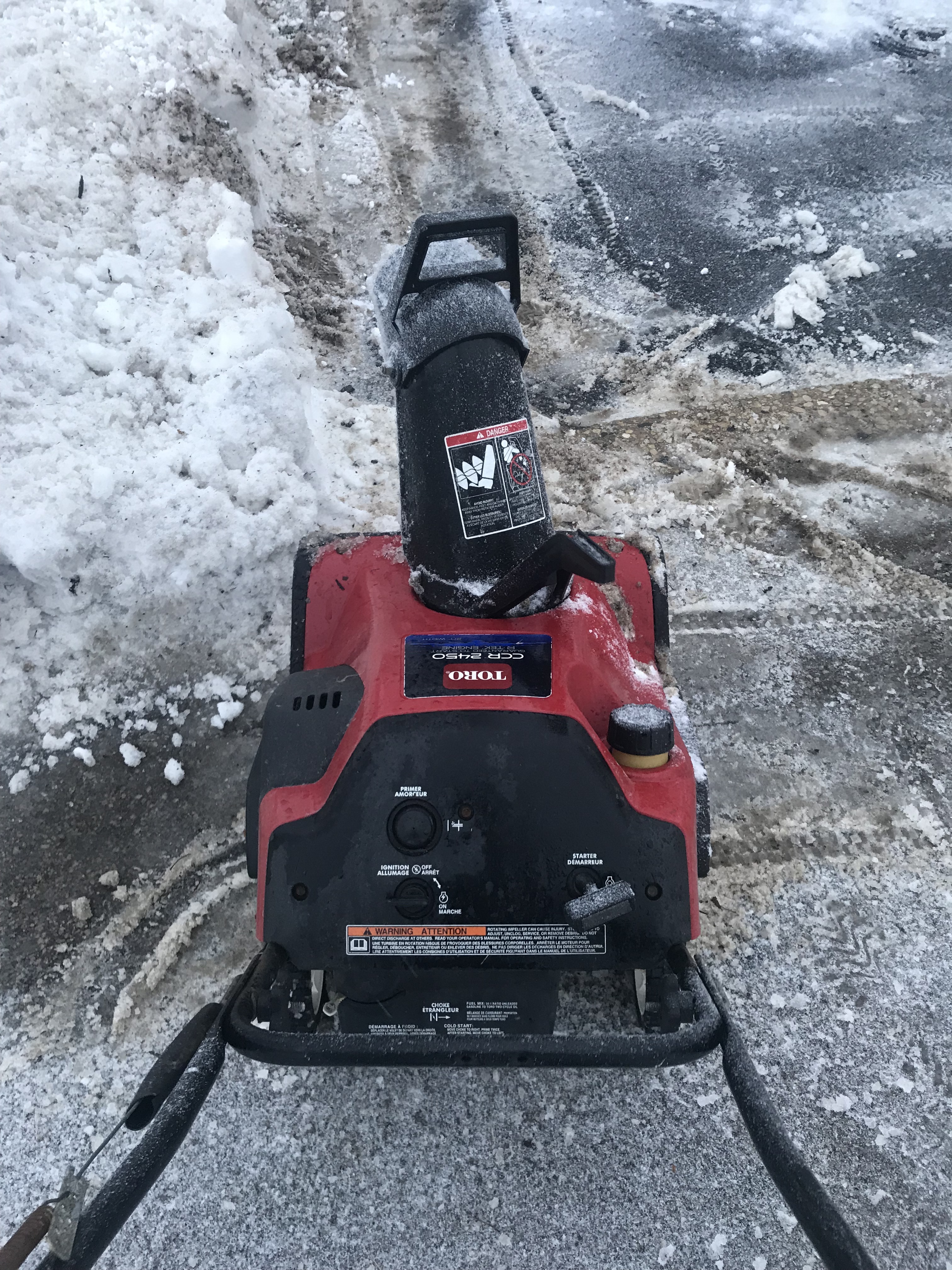 Truth be told, even the basic layer of snow was hard work to move. I’d shoveled enough on the walk and top of the driveway to realize this was not the type of snow one should wrestle with by hand. Hence the snowblower phase.