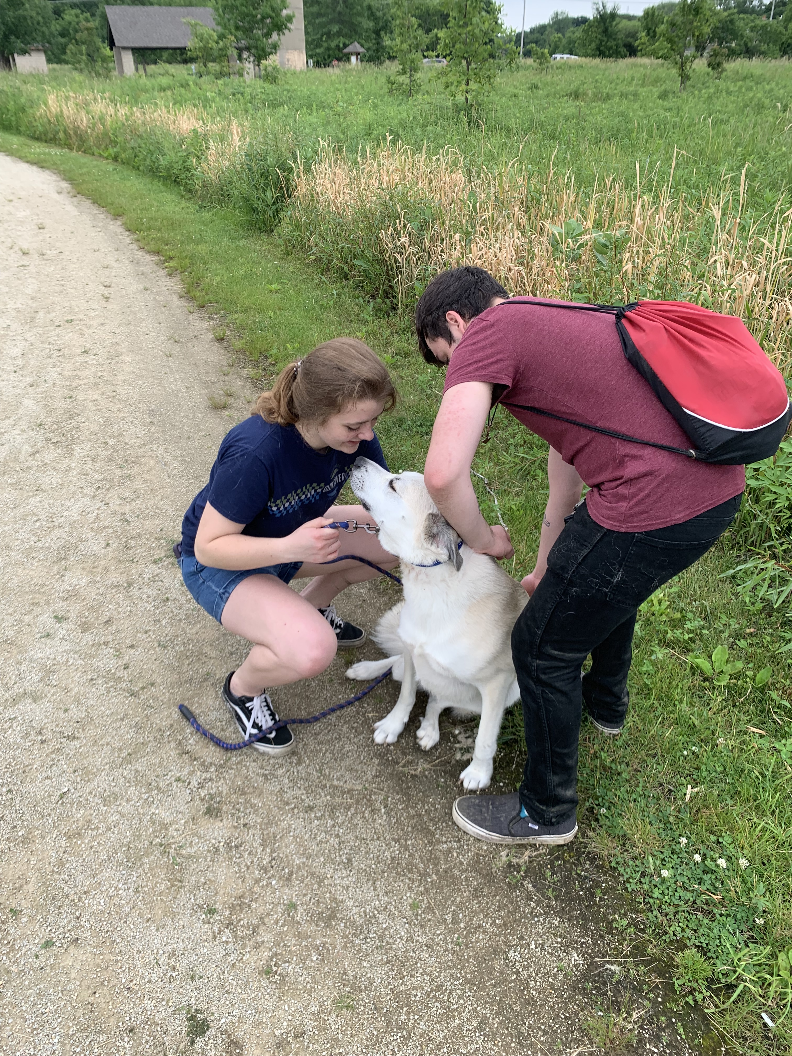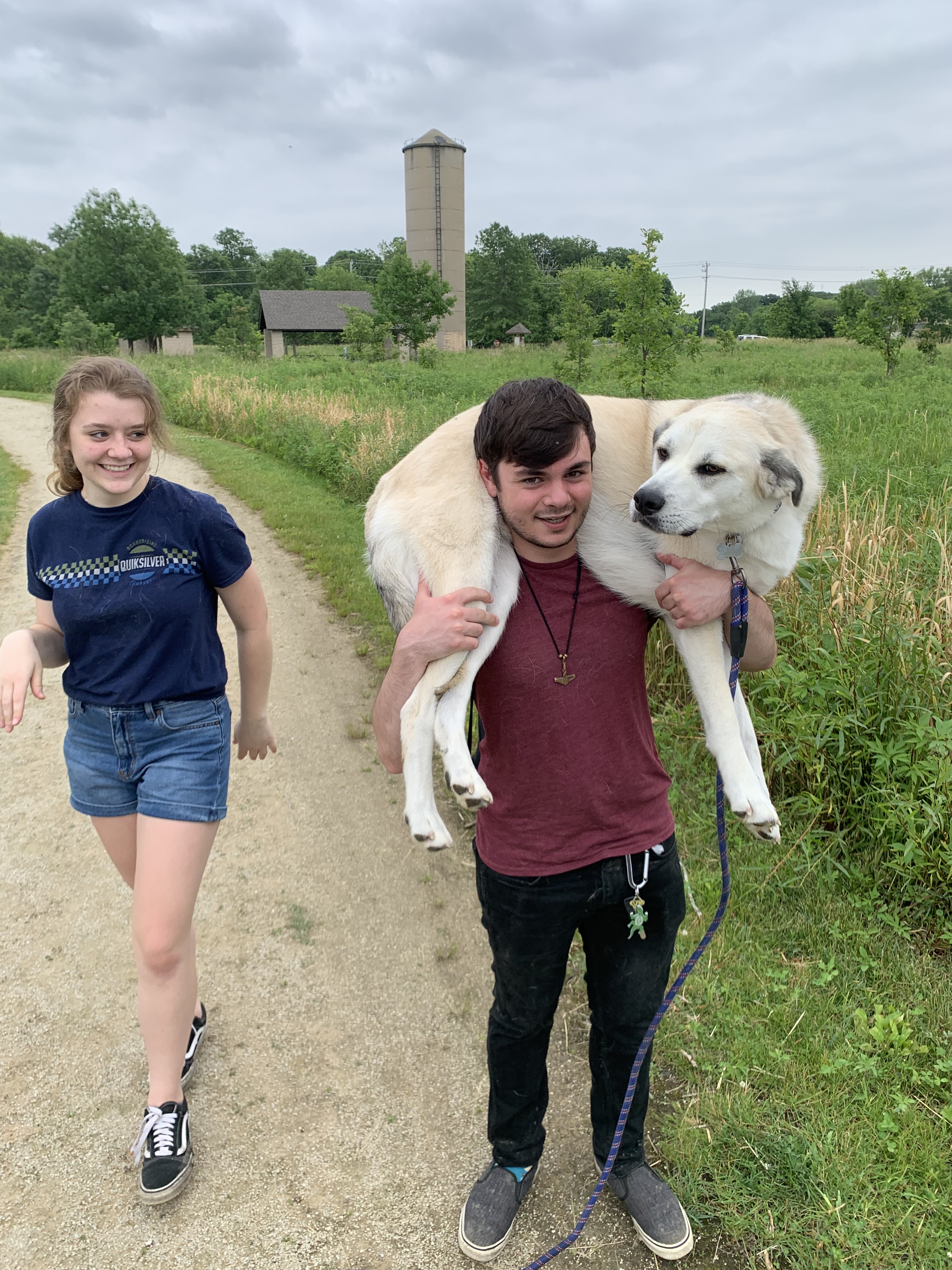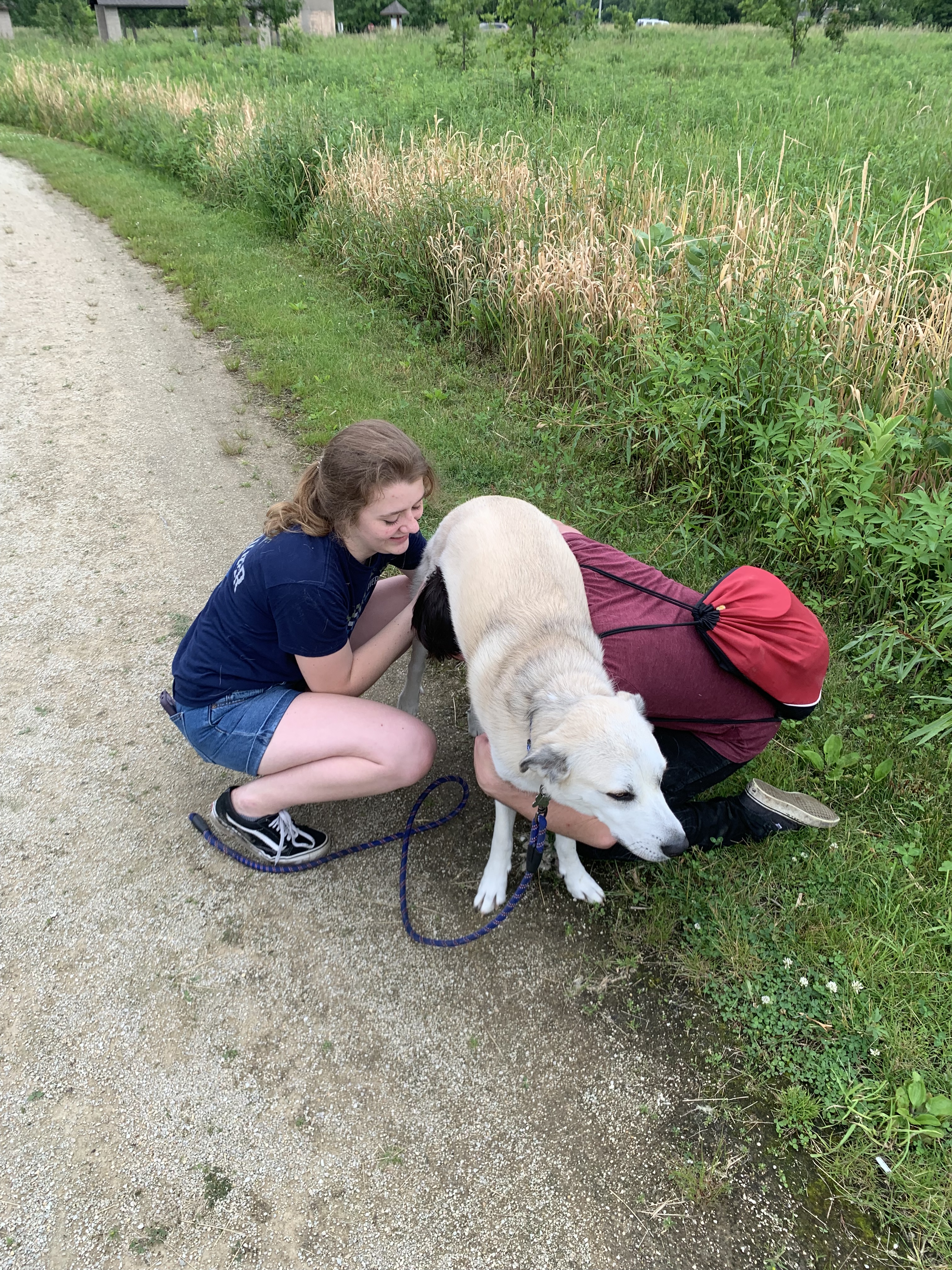 Toward the end of my run through the woods and prairie at Dick Young Forest Preserve, I turned east on the last stretch of trail toward the parking lot and beheld a strange sight up ahead. At first I thought it was someone carrying an injured deer on their shoulders. But as I got closer the it became apparent there was a young man carrying his rather large dog.