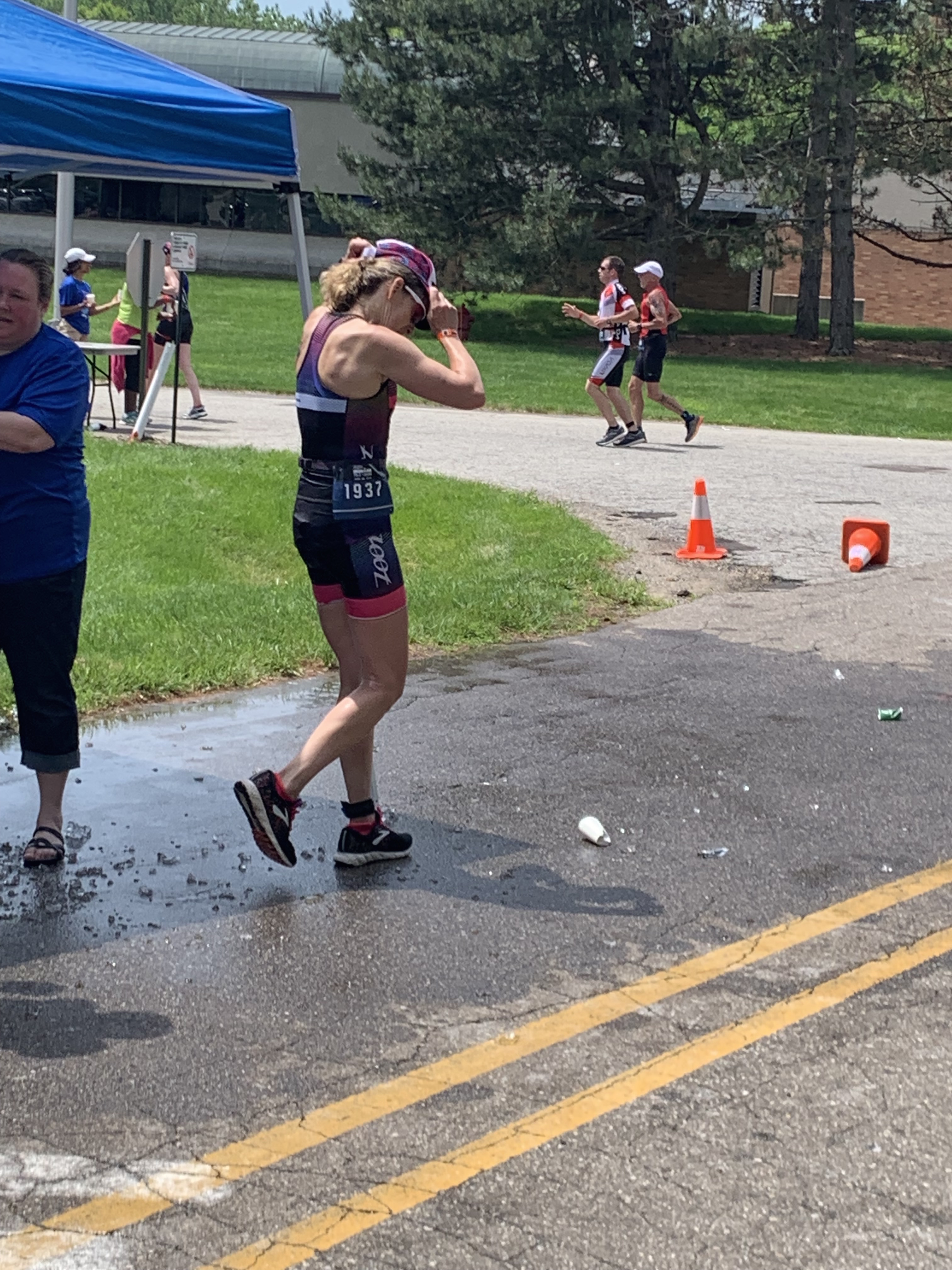 Thus when she crossed the finish line and set a PR (all 5s!) it felt like a major vindication for all the work she’s put in. Her coach Steve Brandes has been a wise and patient guide. Saturday morning he sent her a .gif with a funny image of some robot-like character running and running and running. She got the hint. Keep it rolling when you get to the run phase.