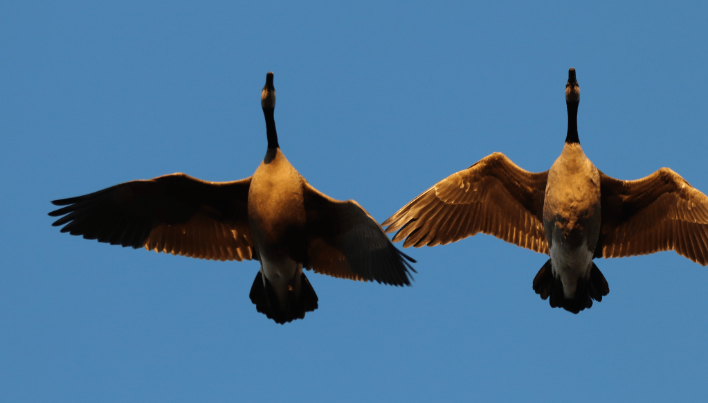 A few weeks ago there were so many geese resting on the water overnight their voices could be heard through the walls of our house. At first I thought they were the sound of a TV or radio left on by my stepson in the bedroom next to ours. I got up to check but it wasn’t the source. Heading downstairs, I poked my head out the back door and listened to the chuckling sound of thousands of geese keeping each other company through the dark night.