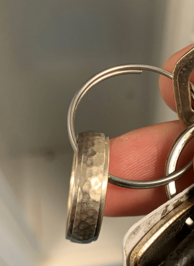 Hear a song over the sound system that recalls a college girlfriend. I glance at the wedding ring on the keychain. Recall that girl wanted a full carat diamond ring or she wouldn’t marry me. That’s what she said. I moved on.