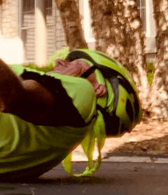 Following an epic countryside ride in which I joined up with much younger cyclists to whip across the Illinois landscape, I was feeling frisky and proud. I got back home and wanted to take a photo for Instagram with my fluorescent cycling combo of bright yellow shoes, helmet, shirt, socks and an all-new yellow headsweat with pirate tails tied behind the head. Yeah, baby!