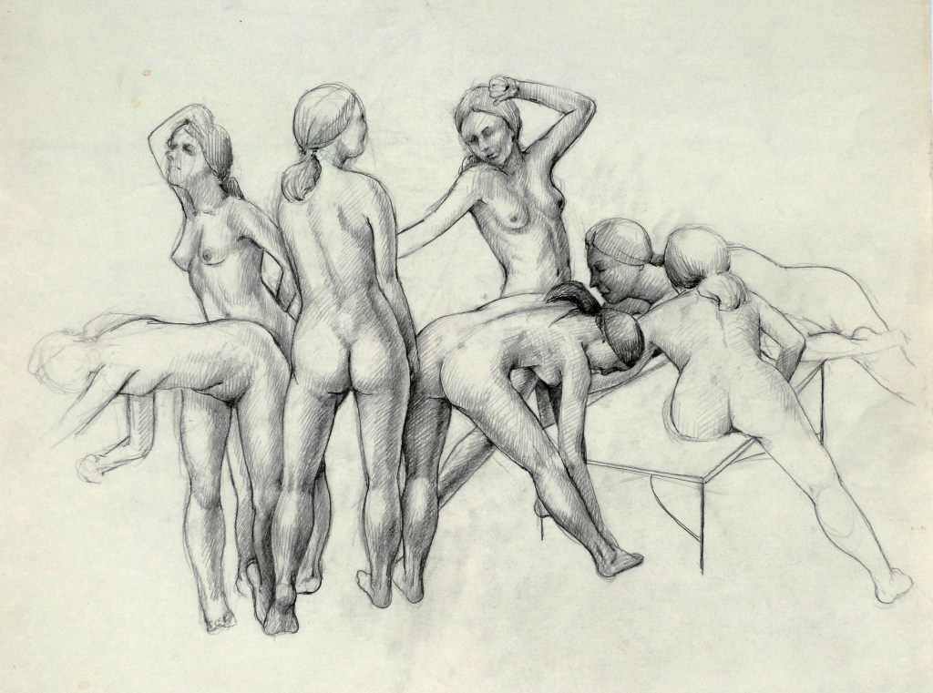 At the same time, I was enrolled in life drawing classes with nude models. Finally the curves and angles of the female body were revealed for what they were: just bodies. Coming back from classes with my armload of drawings each day, I’d be met at the dormroom door by a phalanx of floormates eager to gaze upon what I’d drawn.