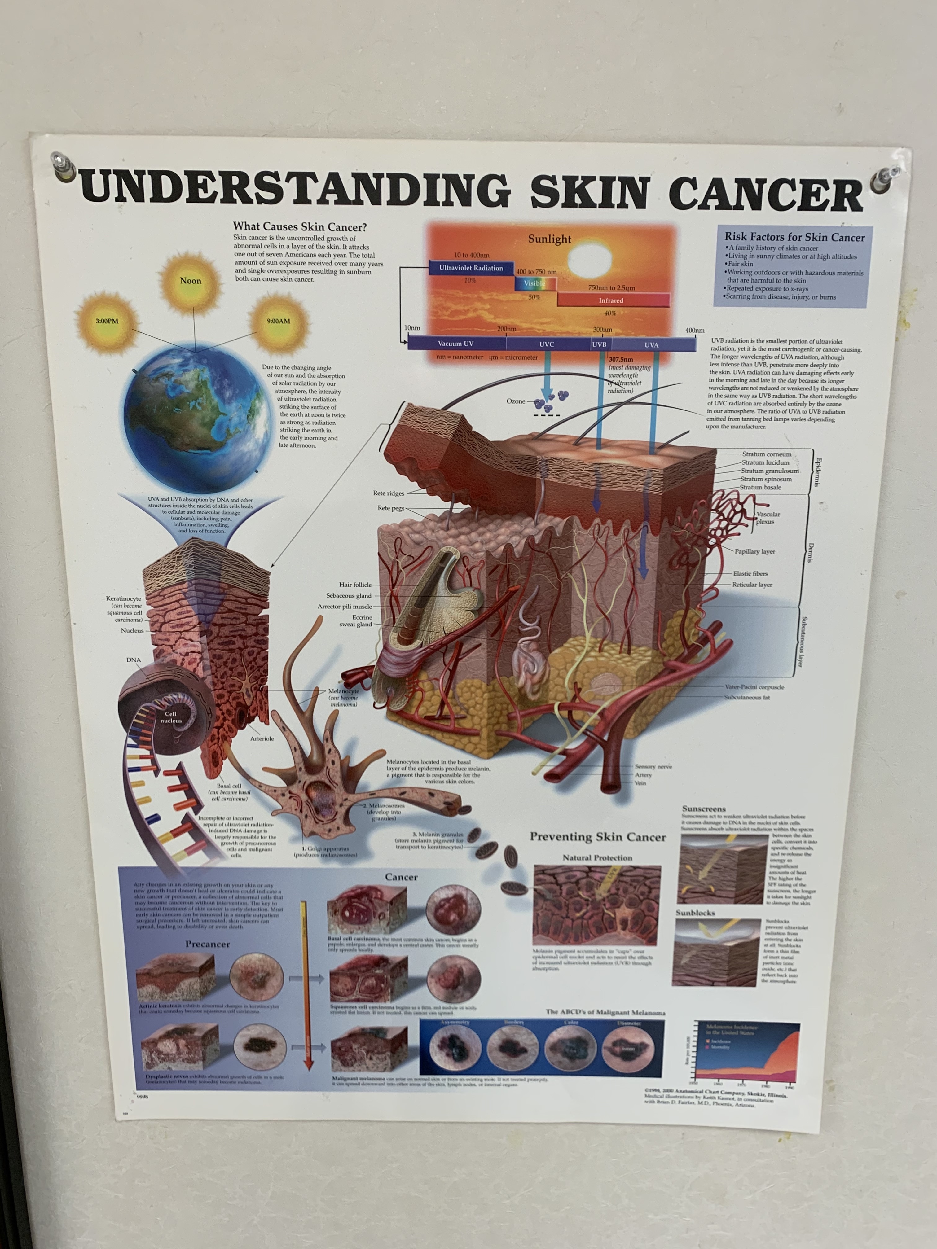 He walked around me like a sculptor looking at a slab of marble, looking for trouble spots. Then he started shooting any suspicious-looking skin with shots of super-cold nitrogen. The spots fizzed and stung. He zapped me in several places while telling me, “These are pre-cancerous. So we’ll freeze them out.” At one point he aimed the big silver canister at my right cheekbone, the spot most susceptible to skin damage thanks to its position on the promontory of the face. Hissssss went the spray. Ouch, went the skin.
