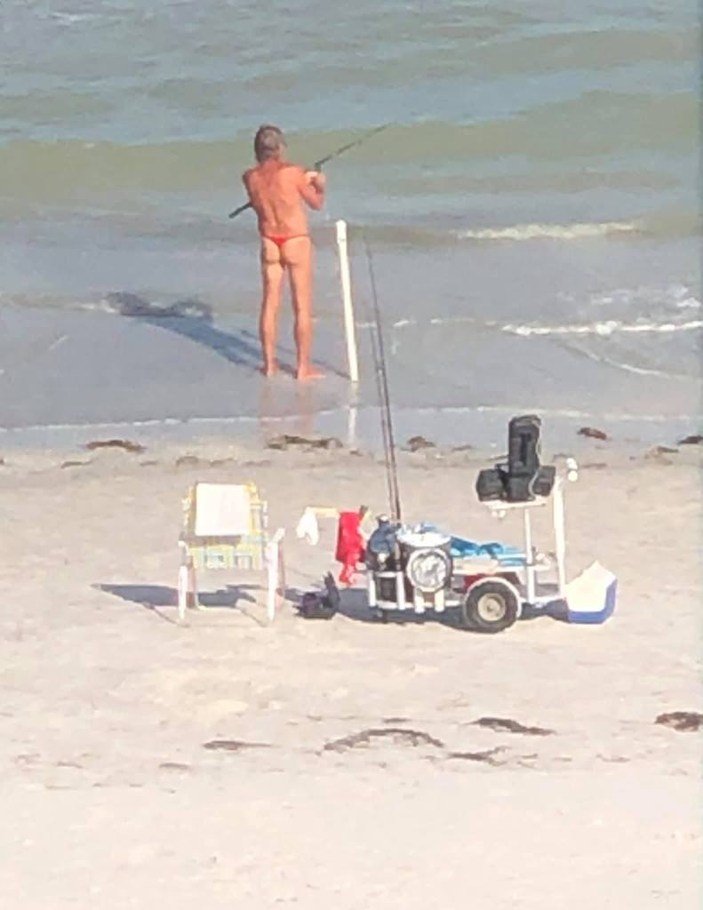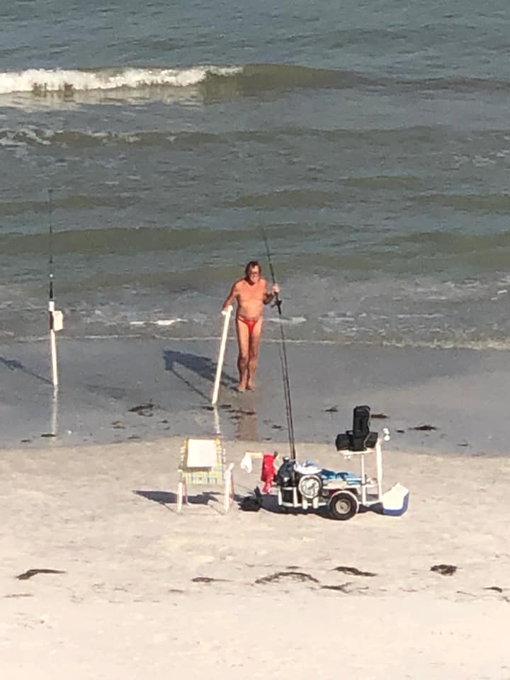 The choice is still out there, of course. We all make our own choices in the end. That is what quickly comes to mind in our thong-strolling fellow coming in off the beach. He’s just hanging out, you might say. And to that, I say, “Have a good day.”