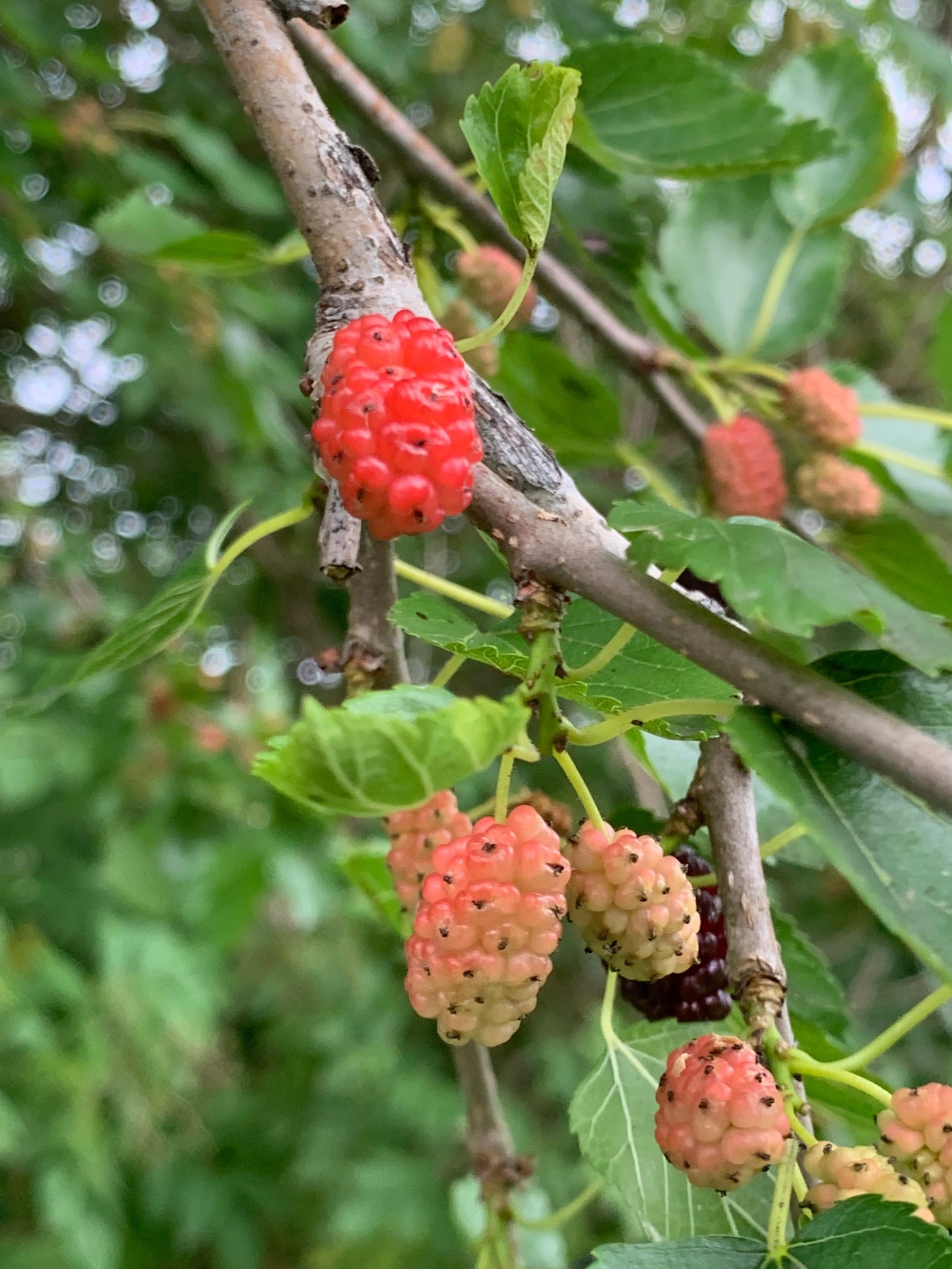 Growing up in southern Illinois, one of my neighborhood friends had a mulberry tree. Delicious when ripe. I think the blue jays took target practice on cars when they had a belly full.