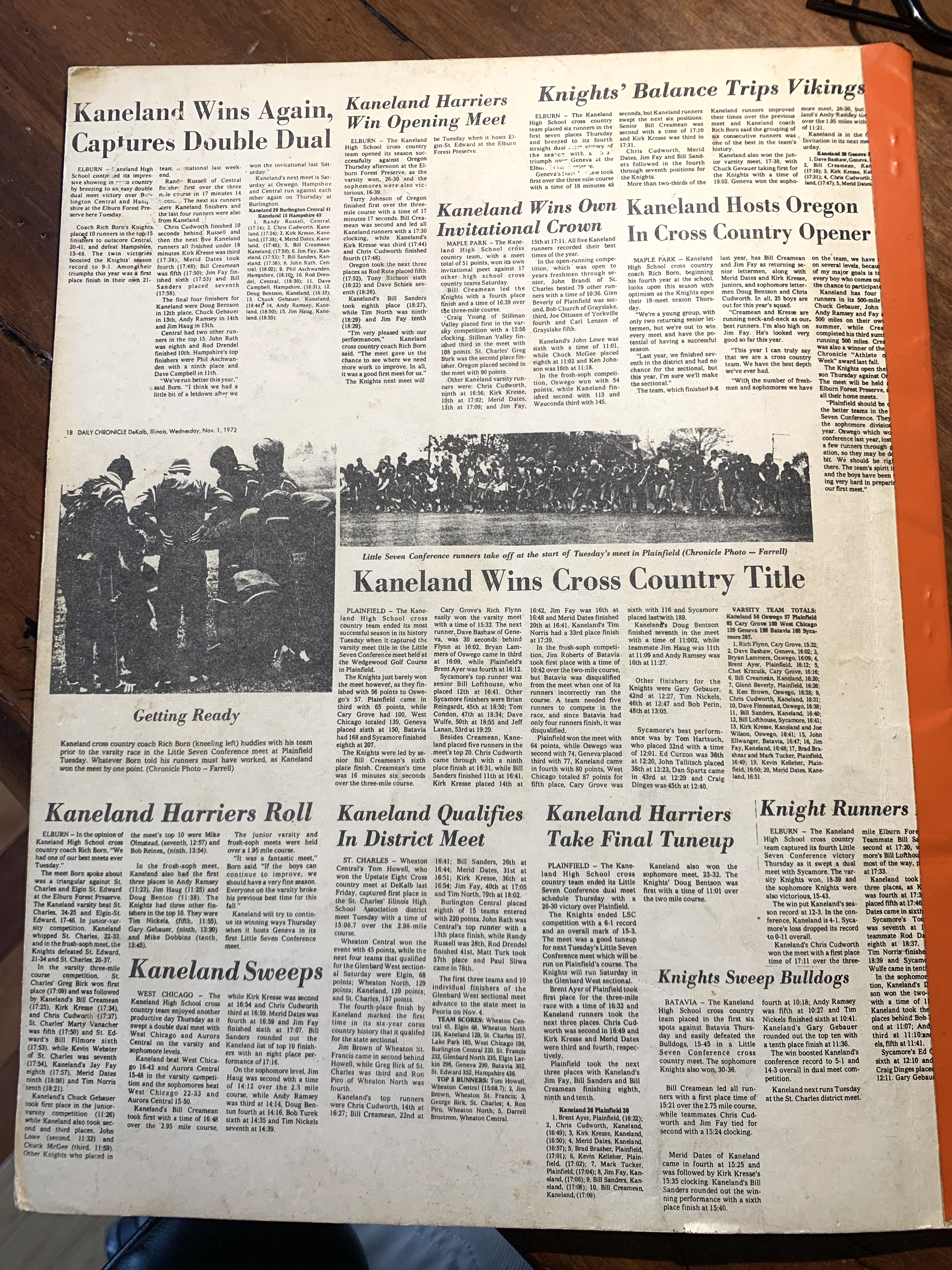 Thankfully, Bill Creamean recovered for the Kane County meet and the Little Seven Conference championship on a Halloween afternoon of December 31, 1972.
