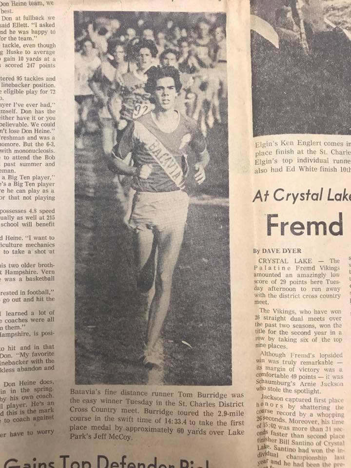 When it came to revving up a potential rivalry in an upcoming race, the timing of that article could not have been worse for me. It published the week that St. Charles, Geneva and Batavia were scheduled to compete in the Tri-Cities meet. The rival that I both respected and feared in that meet was a runner named Tom Burridge.