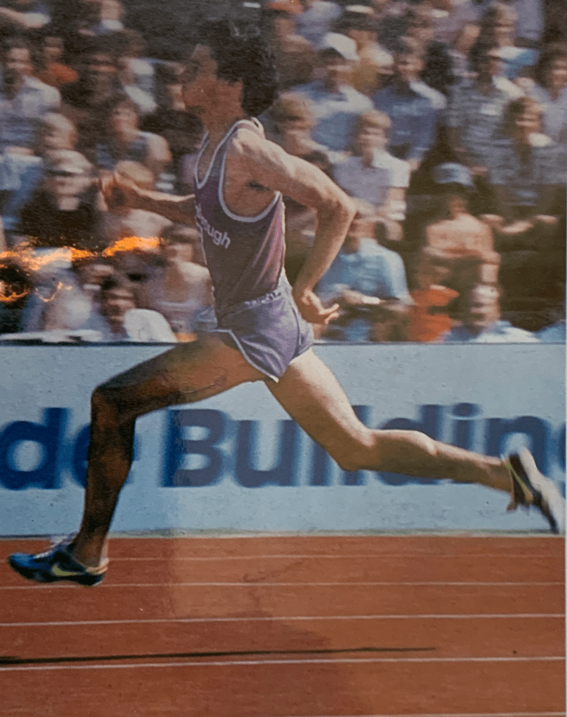 When outdoor season came around during my senior year, I tried my best to help the team win meets every week. Typically that would involve running the two-mile to start the meet. Then I’d go high jump and triple jump. I set a school record at 40’4″ in the triple jump. I high jumped six feet. At the end of the meet I ran the mile. On a couple occasions, I won all four events.