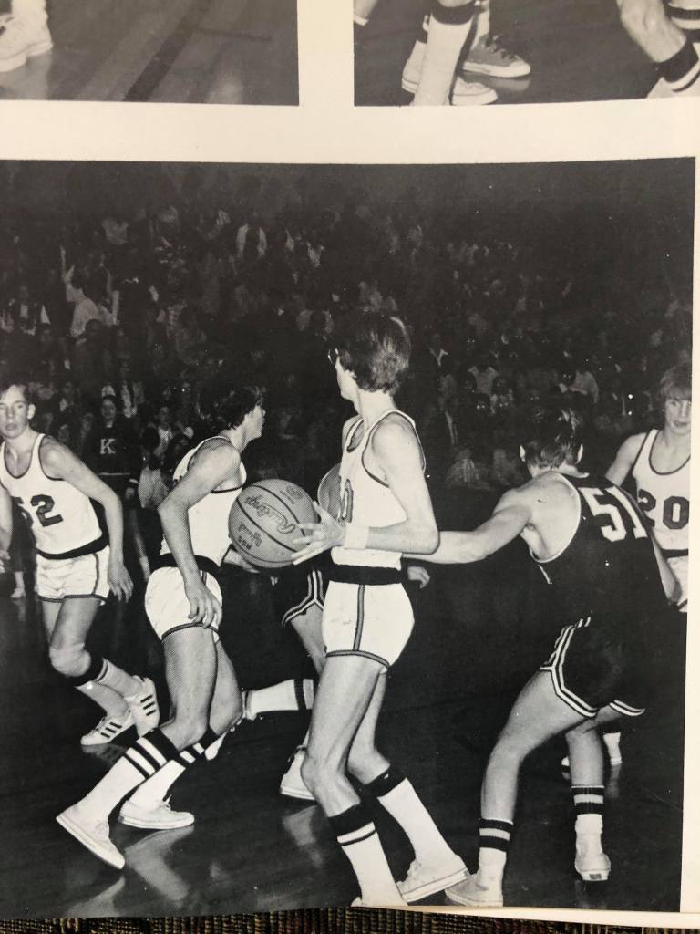At Luther, I was in great basketball shape in late January when I walked past the freshman college team practicing in the gym. A friend of mine and former high school teammate played on the team. I stood there thinking that it might be fun to scrimmage them if I could put a team together.