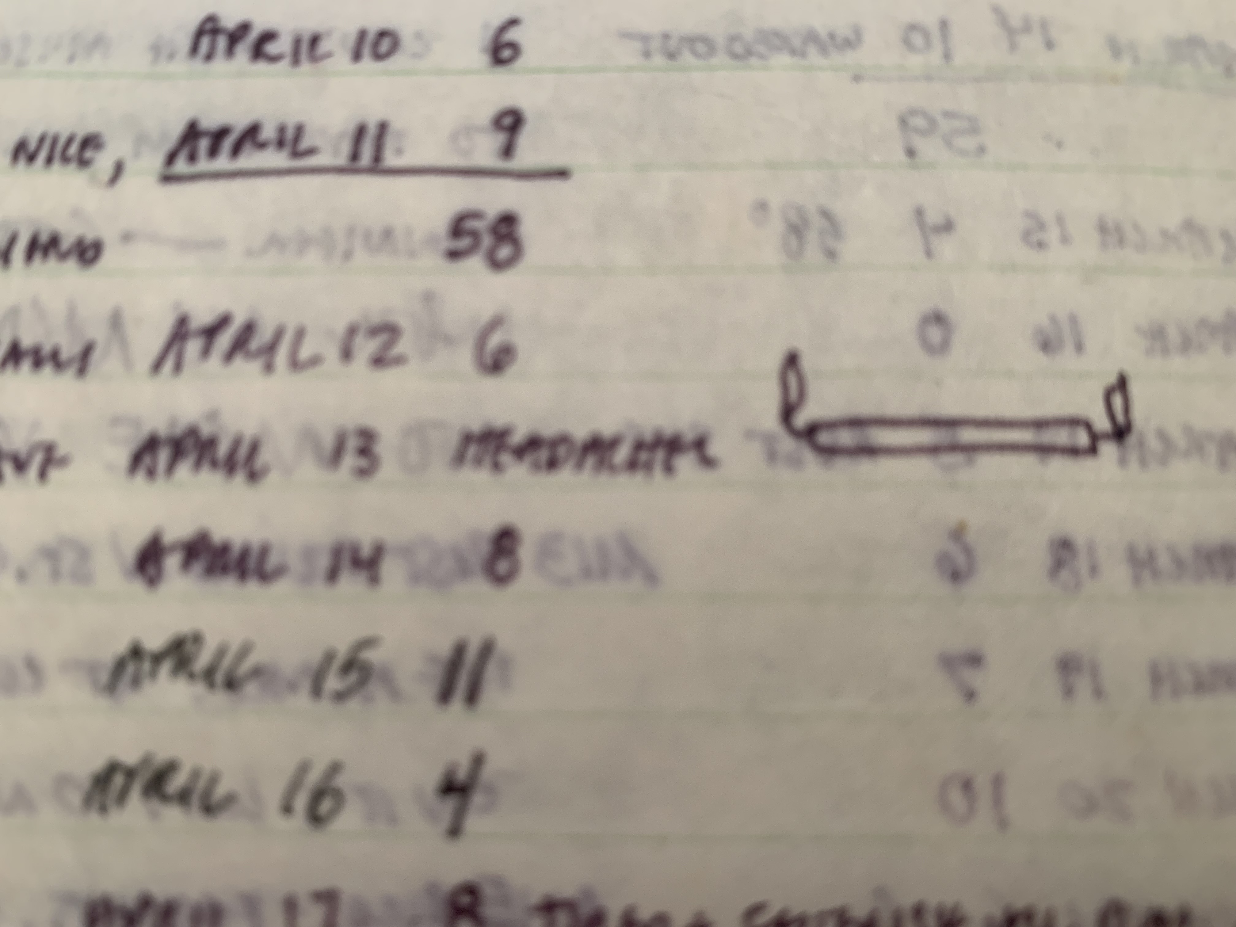 In early March, I had a strange dream in which the father of my former girlfriend’s new fiance had three eyes, and he told me that she wanted me back by June. That wasn’t going to happen, of course. I was trying like hell to forget her. “God she made me guilty, and gunshy,” I wrote. “Well, no more. Get her out, out!! No more vacant dreams.”