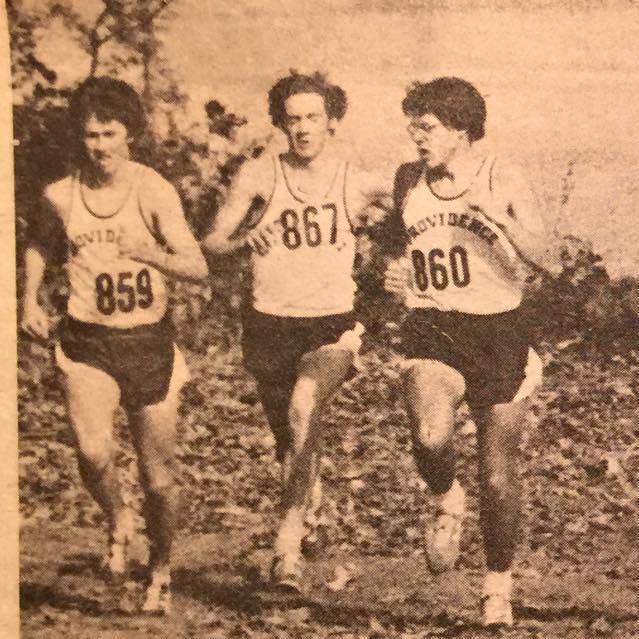We’d been on the roads for quite a few miles when we cut through a set of woods along the way. There were horse trails through the undergrowth, and moving along in single file, we all kept our eyes on the winding path below our feet. Suddenly, the group in front split and we found our lead runner Peter Crooke standing still and looking down at the ground. Now, from my perspective as the new guy in town, and after only a few weeks of knowing him, I already had great respect for Peter. His endurance and speed were remarkable. That fact was borne by his college success at Providence. He continued his racing prowess on the roads.