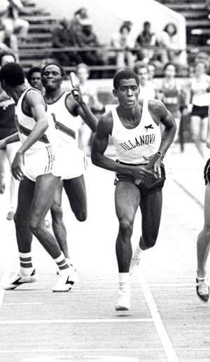 While warming up, we watched a TV crew interviewing Don Paige, the world-class Villanova half-miler. In 1980, he’d planned to lead the US distance squad, but the team didn’t go to the Olympics that year. Through the running grapevine we heard that he’d recently done an insane workout or five or six half miles at 1:55 or faster. Seeing him on the track in that classic Villanova uniform was a bit intimidating. Yet I still wanted to look fast in any case, so that Paige or any other world-class Villanovans that showed up wouldn’t think we were trash runners.
