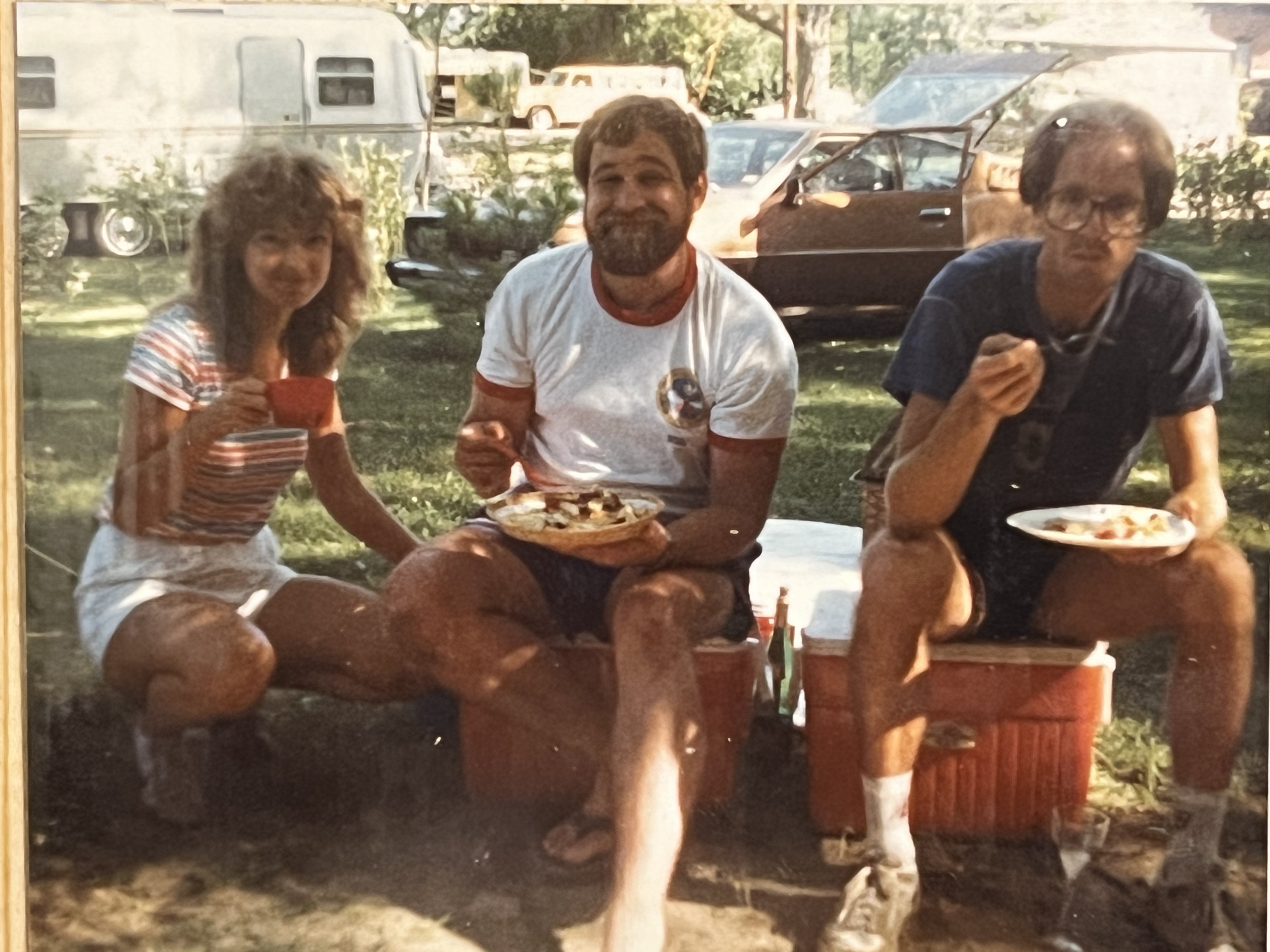 I planned on one out-of-town race in late July, a trip to the old college town to run against former teammates. So I picked up Linda in Geneva and we drove out to Decorah, Iowa in my Plymouth Arrow. Our plan was to meet up with our friends Bob and Kirsten Snodgrass and camp out at Phelps Park (legally or not). We drove separately and met them in Decorah on a Friday afternoon.
