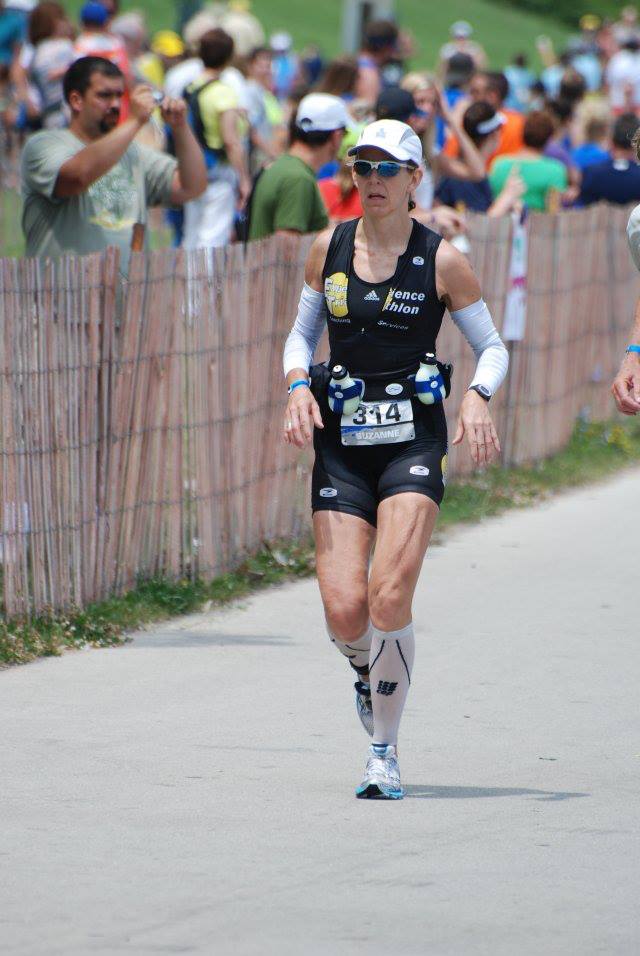 But I could see that the group was passionately supportive of each other. That I liked. When Sue came trotting down the hill on the first run loop at Racine, the ET folks were screaming and she flashed a smile despite the sun bearing down on her back. “Go Sue, go!” I yelled, trying not to sound too desperately eager to be “her man.”