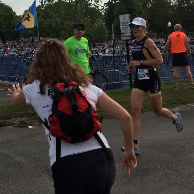 At the finish the crowd lined the course and I’ll admit to relief upon seeing her white knee-high socks come up the path. No matter how you approach triathlon, that last half-mile is a relief for sure. After she finished I walked back to the ET tent where she flopped on the ground with a water bottle in one hand. “How you doing?” someone asked. “Great, now,” she chuckled.
