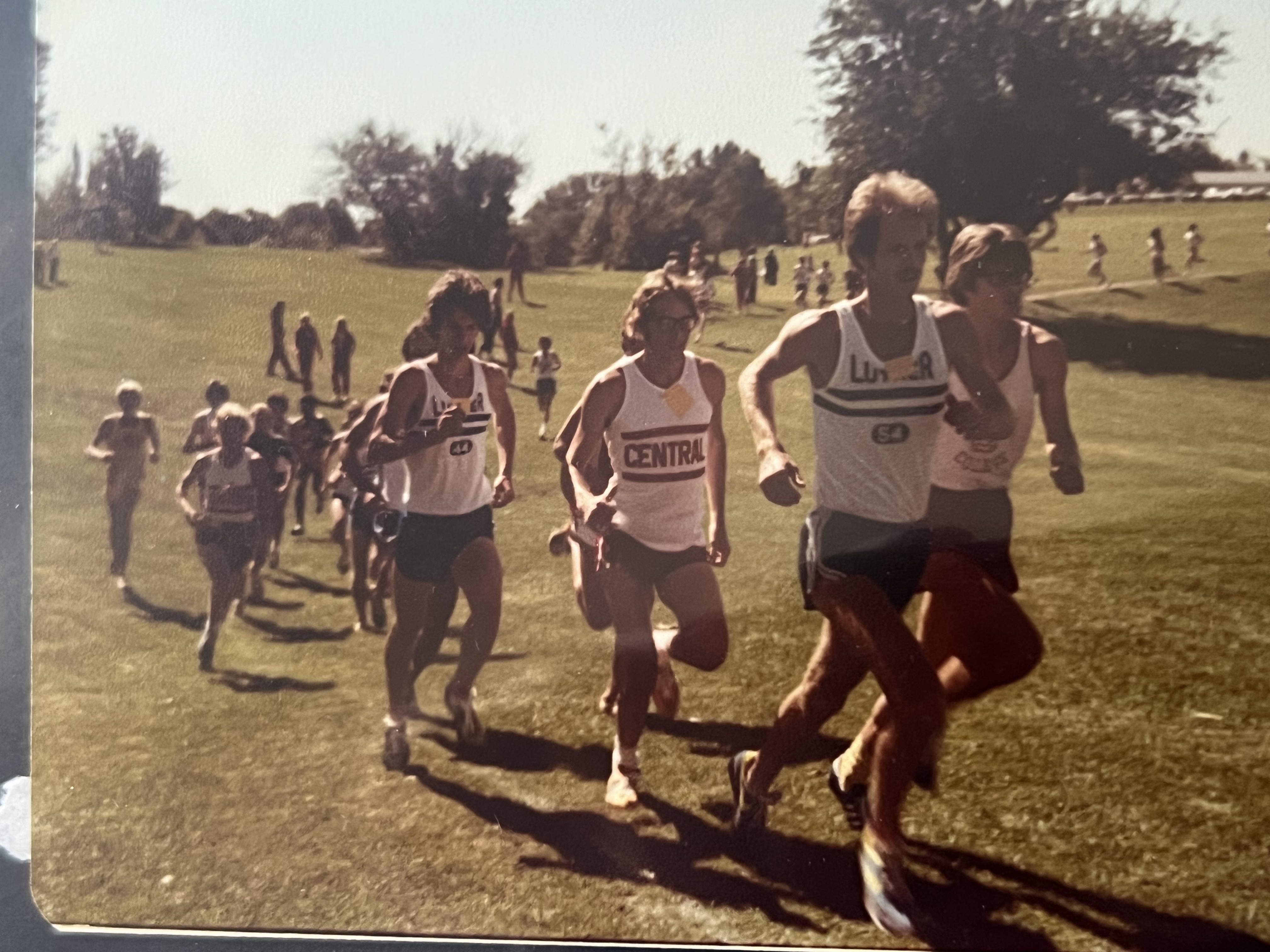 During my senior year in college I led the field in the Grinnell Invitational against our rival Central College. By then I’d gained so much experience and was confident enough to take the first mile out in under five minutes. I recall some golfers watching us roll by in a long line, young men shining in the September morning sun. I didn’t win that day, but finished as our third man that morning and helped lead the team to a second-place NCAA Division III Nationals Cross Country Championship.