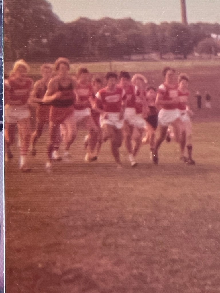 As I approached the middle of the track I felt triumphant that I was on the path to victory. But when I glanced across the track I saw that my rival Rick Hodapp had gone straight and realized that I’d run the course wrong. I’d either forgotten or neglected or never understood the final part of the cross-country course back then.