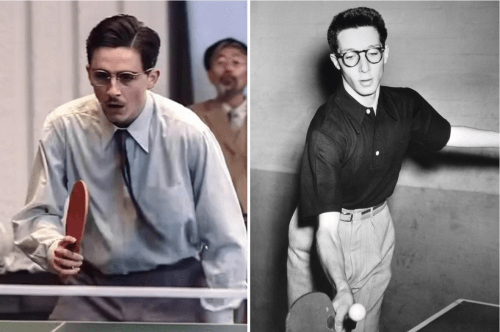 That said, that’s still not the central reason I found this movie personally compelling. See, the main figure is a table-tennis-playing hustler named Marty Mauser. I grew up playing table tennis with my brothers. Our father built us a foldable table out of plywood. We set it up in the cramped basement of our Lancaster, Pennsylvania home, where we learned to contend with low ceilings, water pipes hindering certain shots, and the constant challenge of retrieving ping-pong balls from the dusty, spider-webbed recesses beneath the water heater and furnace.