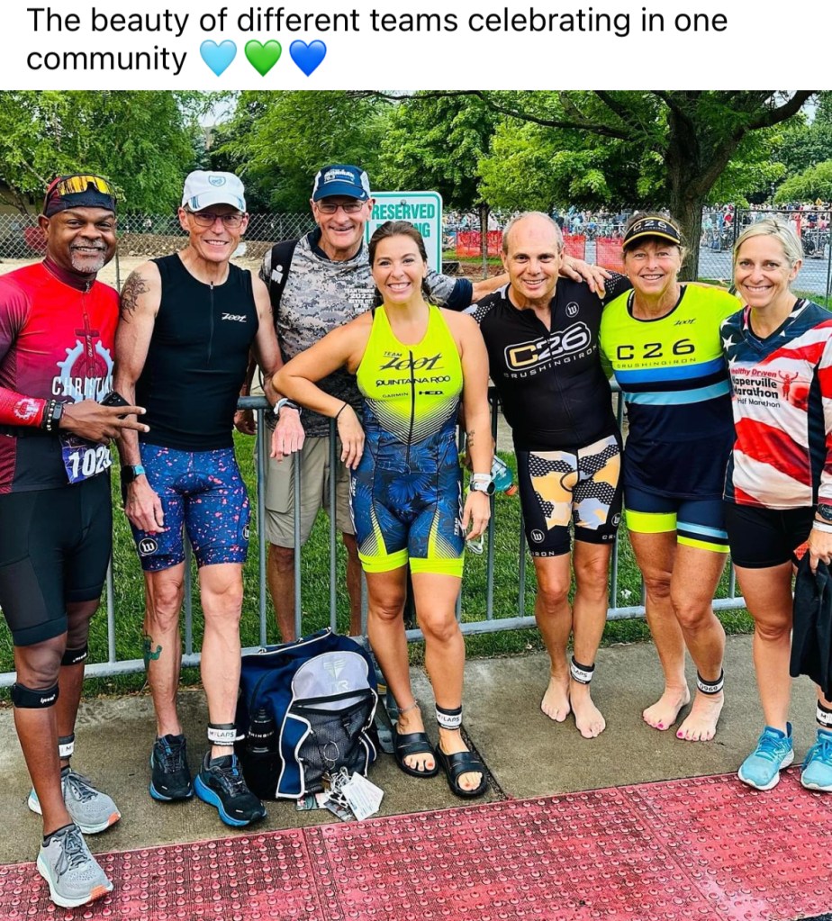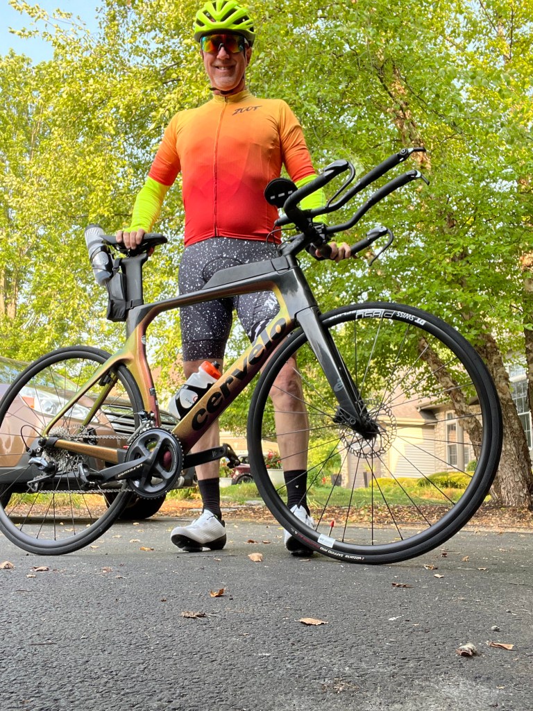Ten years ago, I met my wife Sue on the dating app FitnessSingles.com. We’d been on a bike ride together and I quickly learned how fast she could ride in aero on her Scott tri-bike. I’d already been riding and racing road bikes for seven years by then, so I only struggled a bit keeping up with her. She was scheduled to do a half-Ironman in Racine that July, so I traveled up to watch her. At the time, I thought to myself, “I could never do this.” The open water swimming alone was daunting. I also wasn’t doing many runs longer than six miles due to some hip tightness and the like. At 56 years old, I was still pushing myself in some ways, and had explored the idea of getting into triathlons back in 2003, but tore my ACL playing soccer that year and it took time to rehab. Then my late wife got cancer in 2005 and adding anything to the caregiving menu and lifestyle at that time was out of the question.
