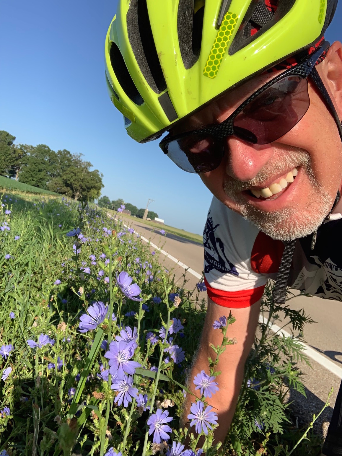 Yet I don’t really miss that either. The whirr of bike tires on the summer tarmac is enough reward for me. My days of leading races may be gone, but the bright blue flicker of chicory in the periphery marks my pace no matter how fast I’m going. That’s a winning effort no matter how you look at it.